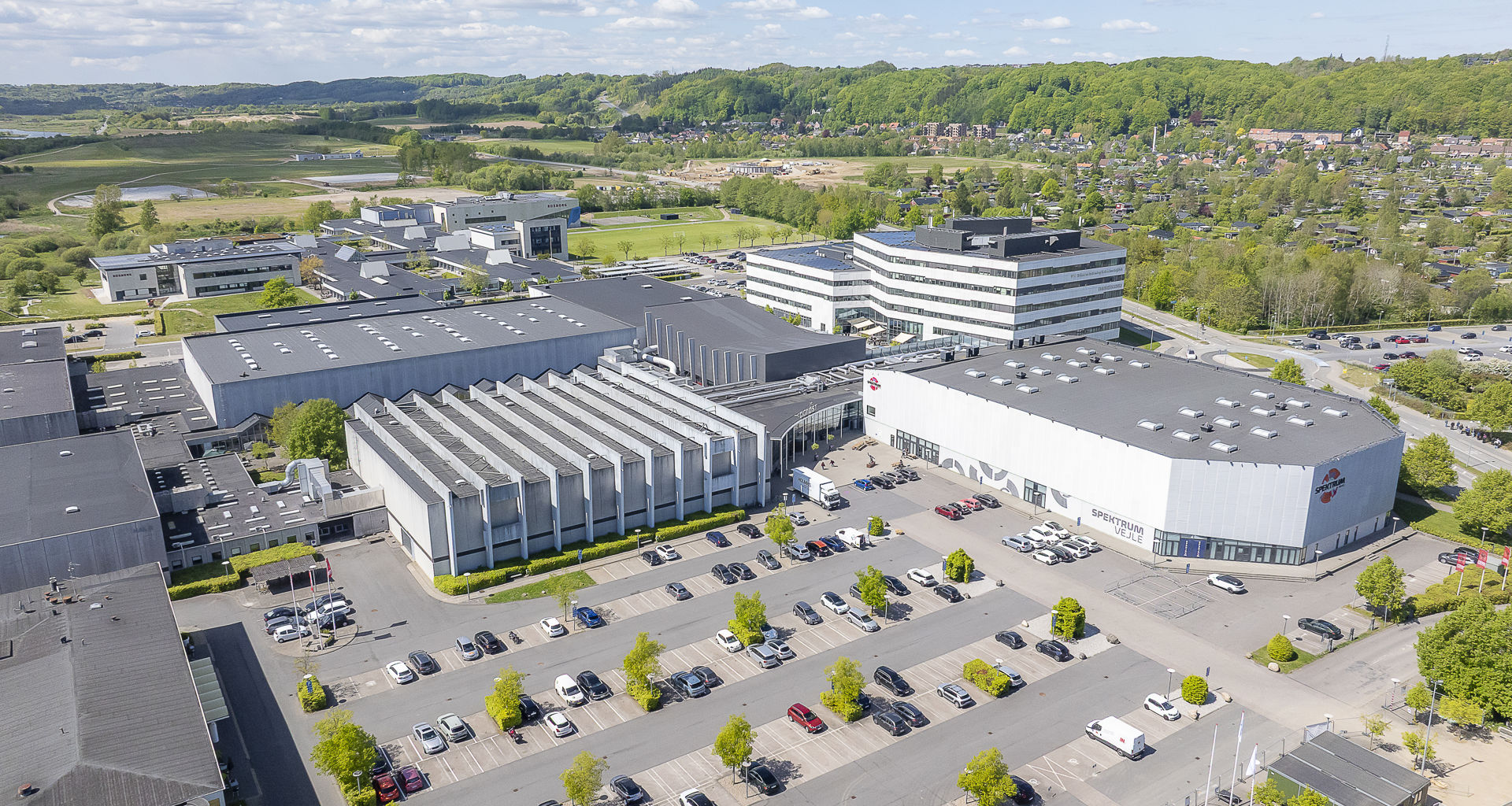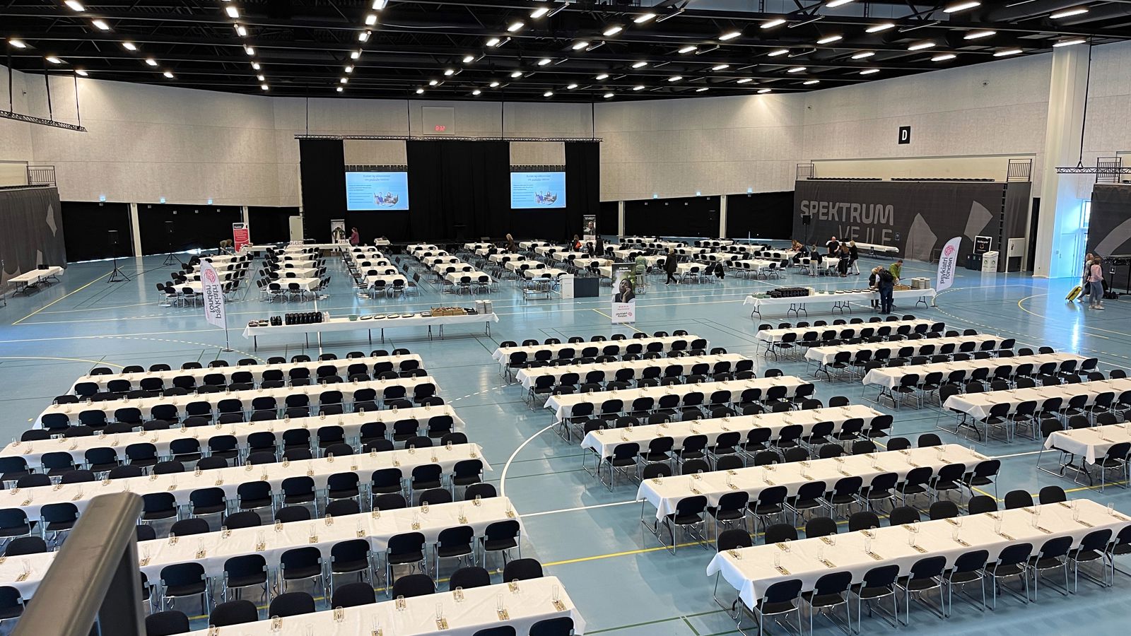 Arenaen kan opdeles i 2 med en foldevæg. Derved kan I f.eks. afholde konference i Spektrum B og bespisning i Spektrum A.