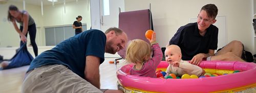 En tryg og hyggelig stund i vandet, hvor du og dit barn sammen leger, synger og styrker glæden ved vand.
